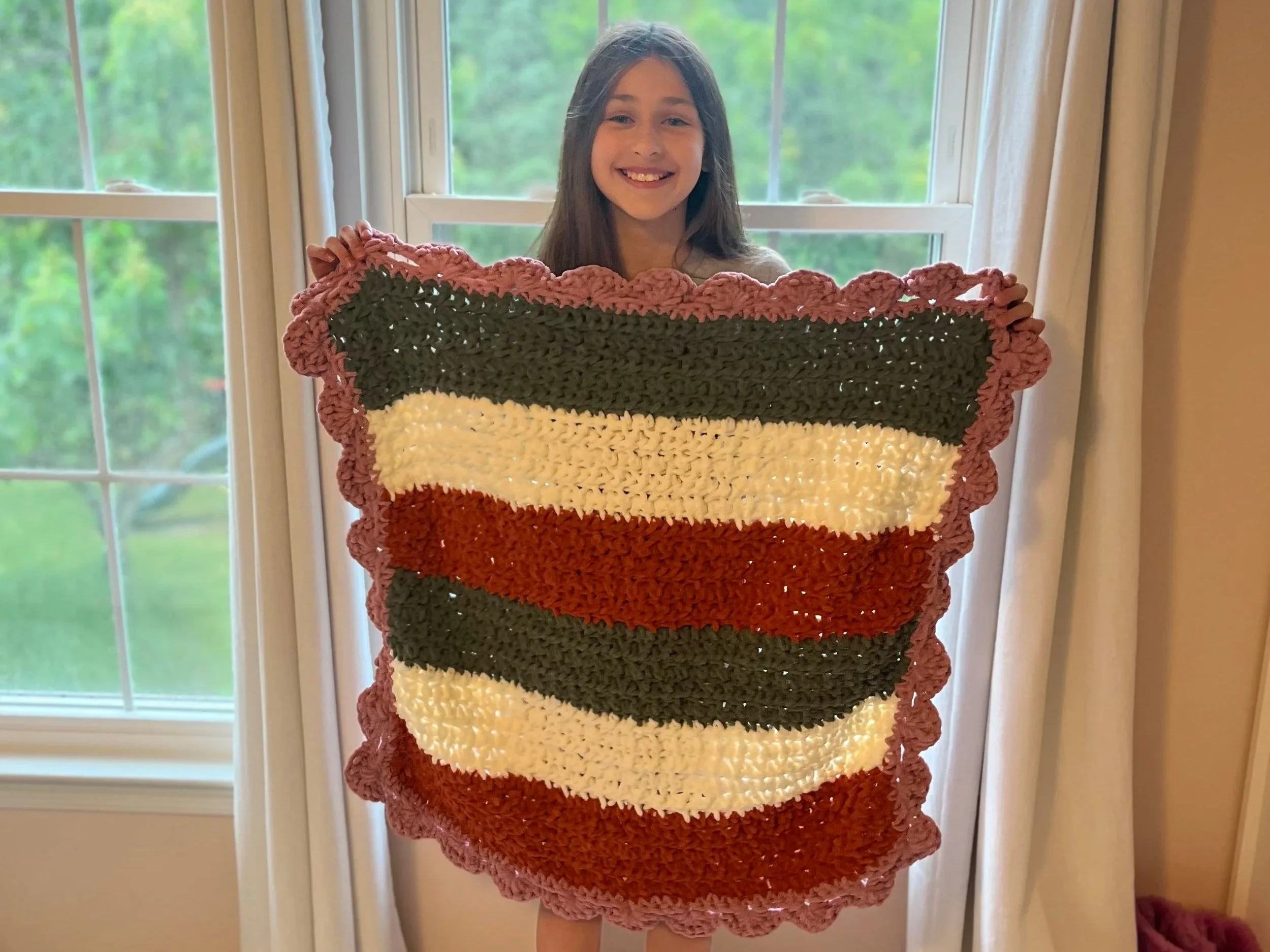 Recently, I’ve made a custom baby blanket with color inspiration from the new grandma (blanket in the picture). To crochet a custom you can contact me below with your ideas and even pictures of what you would like.